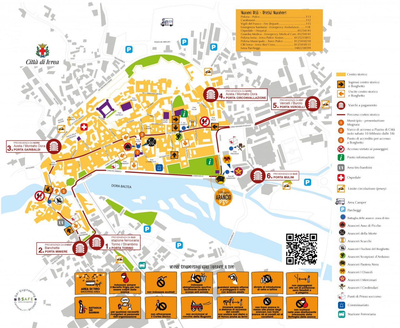 La Fondazione dello storico carnevale ha dato mandato allo studio di Torino per progettare il piano sicurezza. E’ stata dunque elaborata la mappa per muoversi in città e assistere alla Battaglia delle arance. Nel centro storico per andare in piazza Ottinetti e piazza di Città si accede da via Palestro, trasformata a senso unico pedonale.