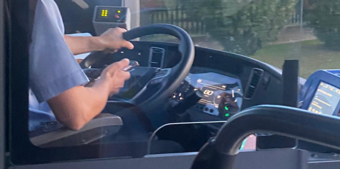 Alla guida del bus mandando messaggi
