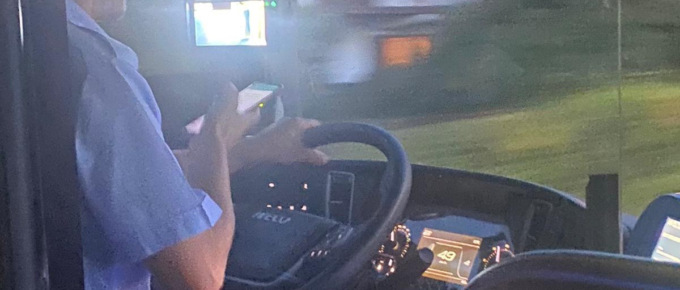 Fotografato mentre usa il cellulare. Non ci sarebbe niente di strano se non fosse che il soggetto della foto è un autista di un pullman di linea, immortalato con il telefono in mano – intento ad utilizzare l’applicazione di messaggistica Whatsapp – mentre è in servizio alla guida di un mezzo pubblico sulla tratta studentesca Rivarolo-Ivrea.
