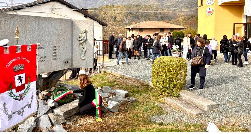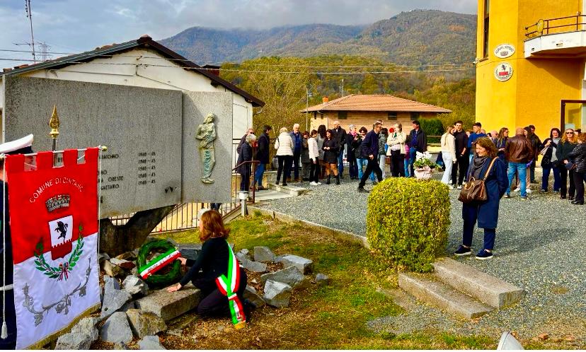 E’ proprio a ridosso del IV novembre che la comunità di Cintano ha vissuto una giornata votata alla propria storia, alla vocazione antifascista e anche alla memoria dei propri Caduti. Sabato 1° novembre, si sono infatti tenuti due importanti eventi: l’intitolazione di una nuova strada a Natale Massa, figura cardine del Novecento cintanese, e la presentazione dell’Albo d’Oro dei Caduti della Prima e della Seconda Guerra Mondiale, il risultato di un impegnativo lavoro di ricerca svolto dalla studentessa del liceo Botta di Ivrea Gaia Giacoletto nell’ambito della sua esperienza di PCTO. Il primo dei due momenti, con l’inaugurazione della strada che un tempo serviva per accedere al vecchio Comune (seppur sbiadita, è ancora visibile la scritta “Vicolo al Palazzo Comunale”), hanno partecipato la stessa famiglia Massa, diversi sindaci del territorio, il Consigliere regionale Mauro Fava, l’Amministrazione comunale e molti cittadini.
