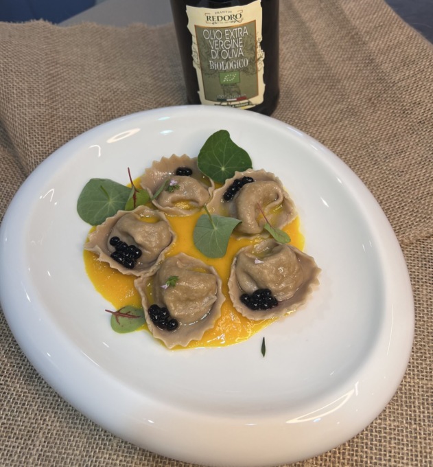 Si chiama “Sapori autunnali” ed è il piatto che ha conquistato il primo premio alla seconda edizione di “Extra Cuoca – Il talento delle donne per l’olio extra vergine”, il concorso nazionale dedicato alle cuoche professioniste, promosso dal Comitato di Coordinamento del Premio Ercole Olivario e dall’Associazione Nazionale Donne dell’Olio, in collaborazione con Lady Chef, sezione femminile della “Federazione Italiana Cuochi” (F.I.C.). Un primo piatto che vede tortelli di castagne ripieni ai funghi porcini e Castelmagno, su crema di zucca e topinambur. La deliziosa e premiata composizione è stata realizzata dalla cuoca Ionela Munteanu, professionista piemontese della ristorazione che  lavora al “Caffè Stazione” trattoria di Pessinetto, nelle Valli di Lanzo. Per la preparazione del piatto, la chef, ha utilizzato l’olio RedoroIl concorso “ExtraCuoca” nasce per valorizzare le cuoche professioniste , italiane e straniere, operanti in Italia che, attraverso una loro ricetta, si distinguono per la particolare maestria e creatività nell’esaltare le caratteristiche organolettiche di un olio extra vergine di oliva, contribuendo a promuovere la professionalità delle cuoche e a far conoscere le potenzialità legate all’uso consapevole dell’olio stesso. In quest’ottica di valorizzazione dell’olio italiano, in sintonia anche con la recente nascita del Ministero dell’Agricoltura e della Sovranità Alimentare nella sua nuova denominazione, il presidente Mencaroni ha sottolineato la funzione informativa e, insieme, educativa del concorso Extra Cuoca, che quest’anno si è manifestata, in particolare, nella proposta di podcast formativi denominati “Pillole di Conoscenza”, rivolti alle cuoche iscritte, e nell’attivazione di un corso di assaggio a distanza messo a punto in collaborazione con Evoschool. Ad intervenire poi alla premiazione Federico Sisti, Segretario Generale della Camera di Commercio dell’Umbria; Gabriella Stansfield, Presidente dell’Associazione Donne dell’Olio; Giorgio Donegani e Alessandra Baruzzi. Il Concorso “Extra Cuoca – Il talento delle donne per l’olio extra vergine” 2022 ha il sostegno di “Fondazione Evooschool”, Università dei Sapori, Pentole Agnelli e Montosco.