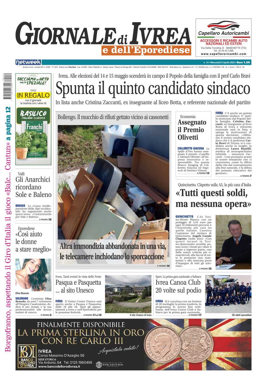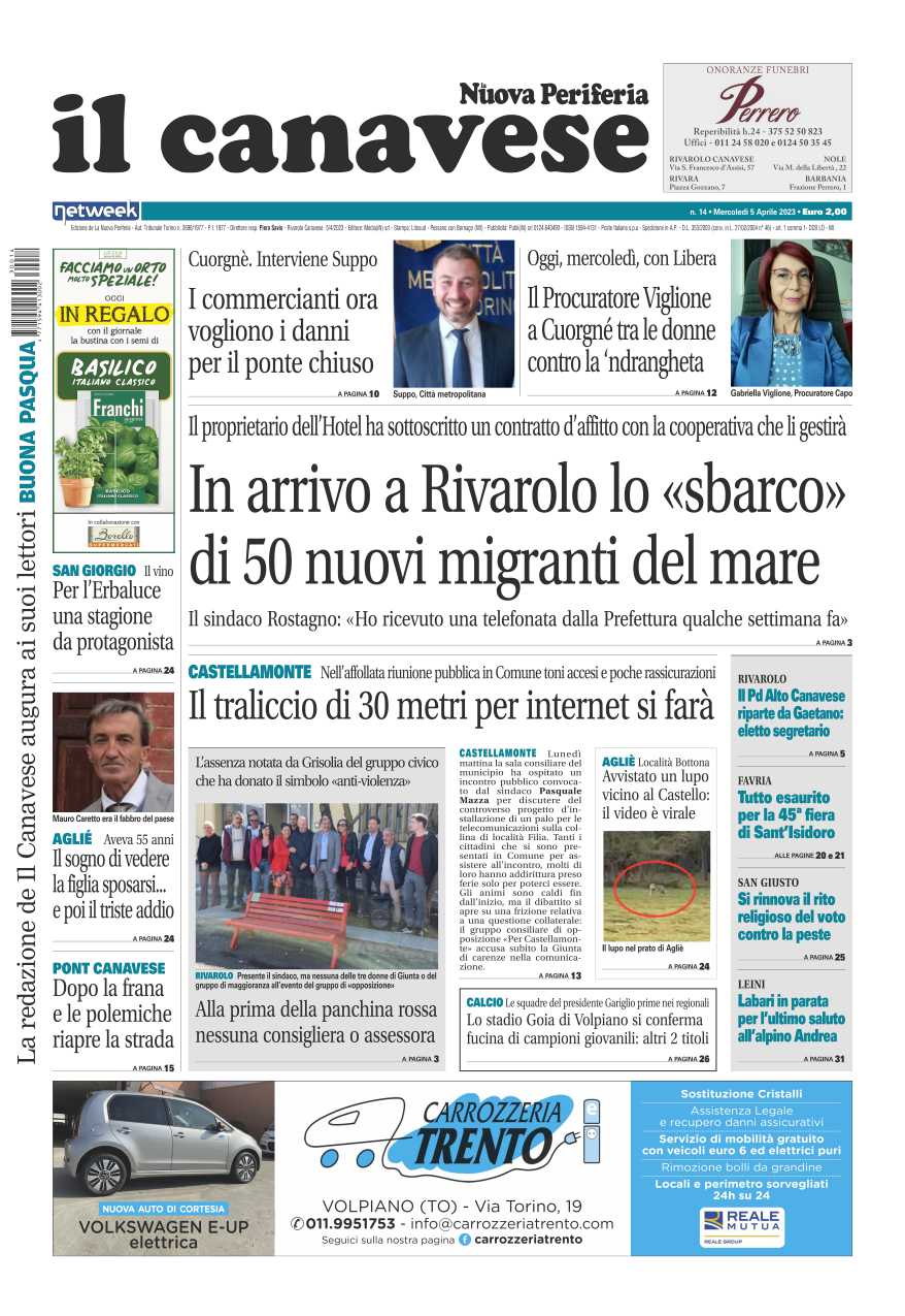 Da domani, mercoledì 05 aprile 2023 il Canavese – edizione Rivarolo, Il Canavese – edizione Ciriè e Valli di Lanzo e Il Giornale di Ivrea sono in edicola. Ecco le prime pagine e le notizie principali.