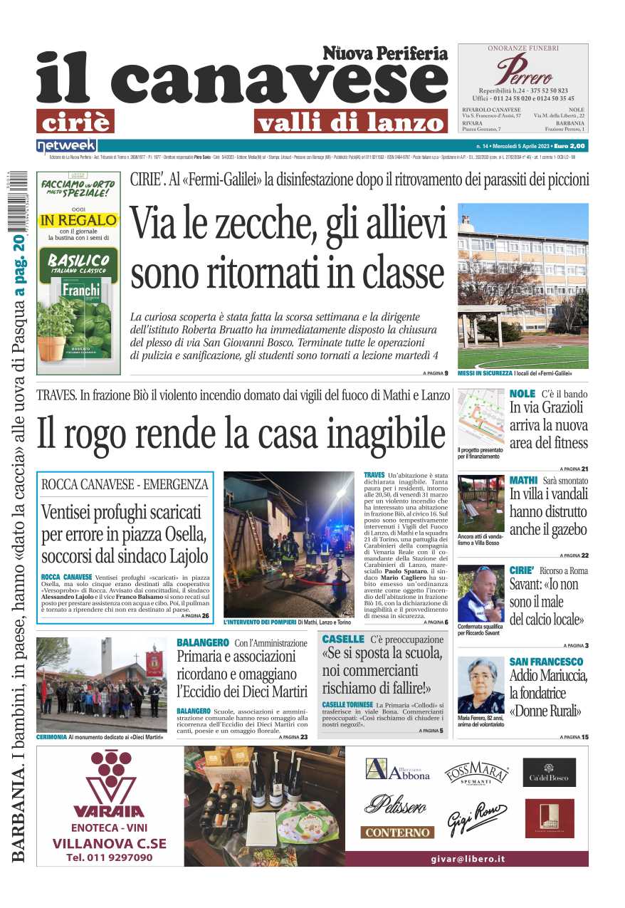 In prima pagina gli studenti dell’istituto Fermi Galilei tornati in classe dopo la chiusura della scuola a causa della presenza delle zecche dei piccioni. A Traves in frazione Briò a fuoco un’abitazione, il violento incendio domato dai Vigili del fuoco rende la casa inagibile. A Rocca ventisei profughi scaricati per errore in piazza Osella, soccorsi dal sindaco Lajolo.