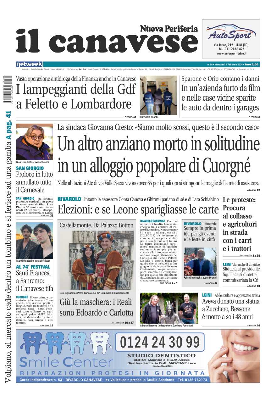 In questa edizione in primo piano il ritrovamente di un altro uomo senza vita in un alloggio Atc di Cuorgnè, è il secondo caso nel giro di poche settimane. La Procura di Ivrea è al collasso, i sindaci del Canavese scrivono al ministro della giustizia per chiedere che venga trovata una soluzione. I Santi Francesi sul palco di Sanremo, tutto il Canavese tifa per loro.