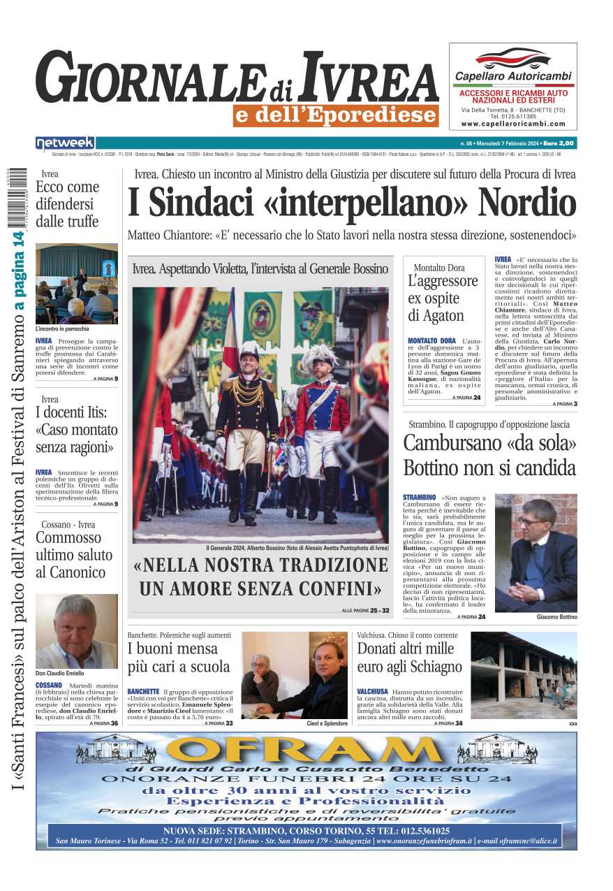 In evidenza ls grande attesa per il Carnevale che nel weekend entrerànel vivo con l’uscitadella Mugnaia e la Battaglia delle arance. Il sindaco di Ivrea Matteo Chiantore e i sindaci altocanavesani hanno scritto al Ministro della giustizia per chiedere l’apertura di un tavolo tecnico per la risoluzione dei problemi del tribunale al collasso. L’attentatore della stazione di Parigi, un maliano residente a Montalto Dora, ospite della comunità che si trova nella struttura a fianco alla chiesa.