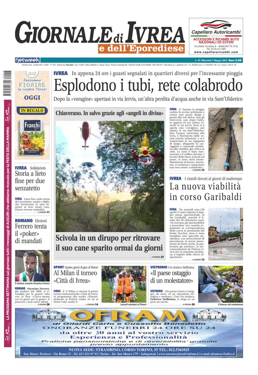 Da domani, mercoledì 1 maggio 2024 come ogni settimana Il Canavese – edizione Rivarolo, Il Canavese – edizione Ciriè e Valli di Lanzo e Il Giornale di Ivrea sono in edicola con tantissime notizie.