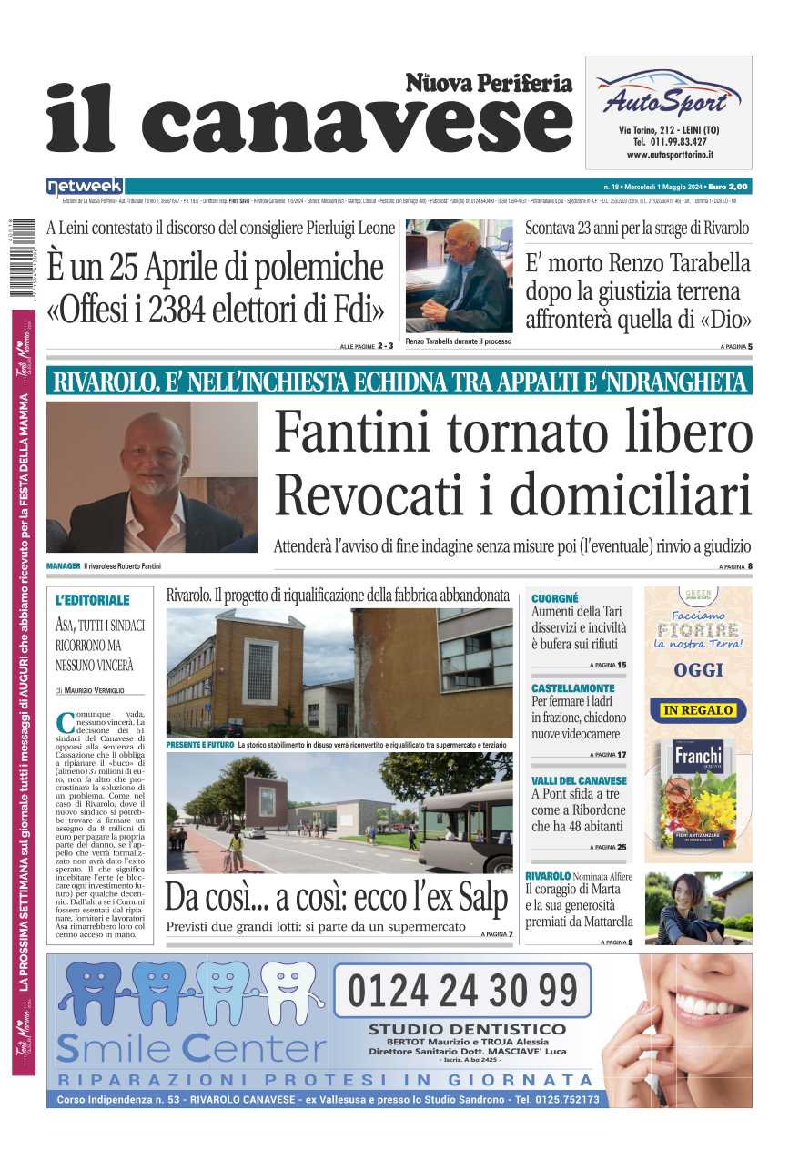 In questa edizione in primo l’inchiesta Echidna: l’imprenditore rivarolese Fantini è tornato in libertà, revocati gli arresti domicilliari. A Rivarolo il terreno dell’ex Salp diventerà un centro commerciale, ecco come verrà sfruttata la zona dell’ex conceria. È morto Renzo Tarabella, l’assassino della strage di corso Italia a Rivarolo si è spento per sempre.