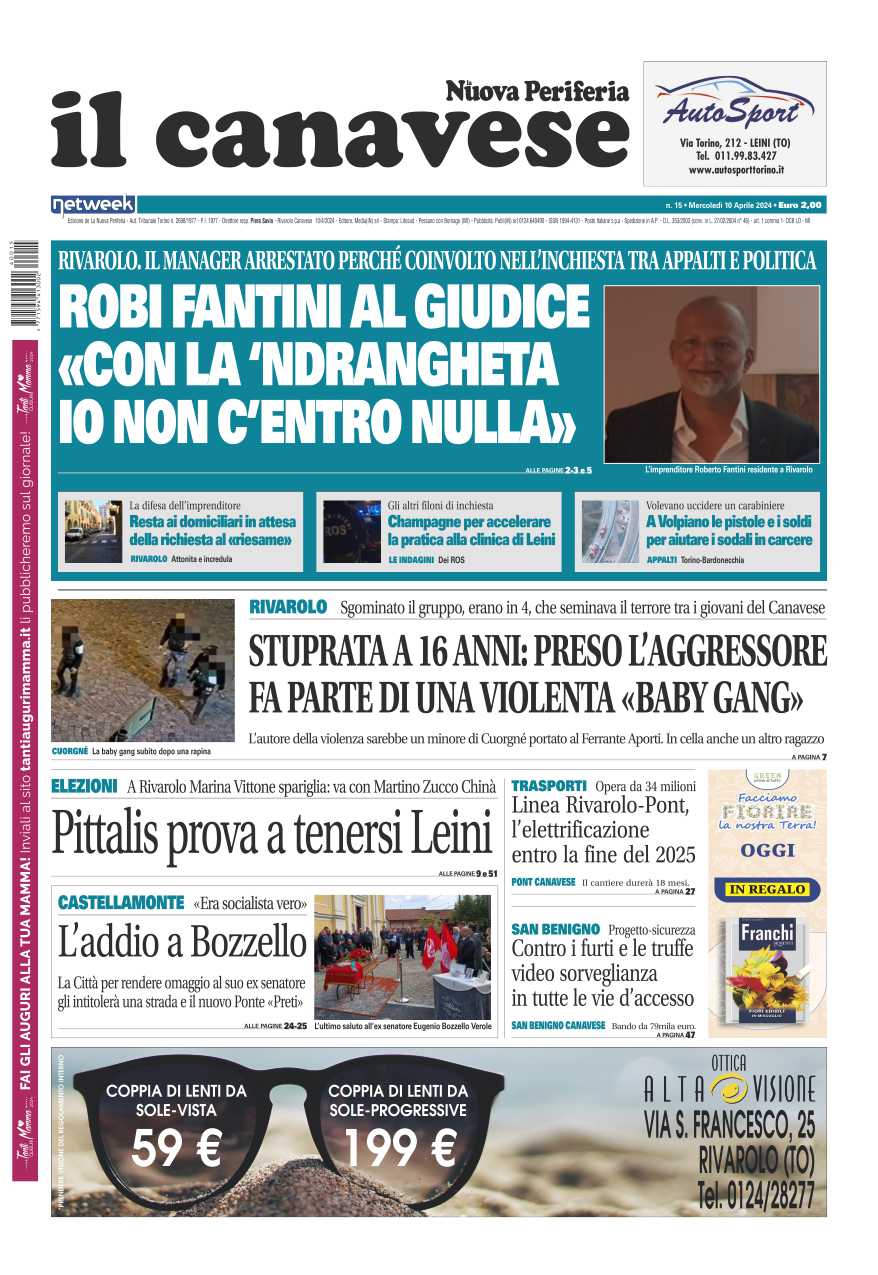 In questa edizione in primo piano l’arresto del manager Roberto Fantini, coinvolto nell’inchiesta che ha travolto il Pd torinese, l’imprenditore é accusato in concorso esterno in associazione mafiosa. I carabinieri hanno arrestato 4 membri di una baby-gang che terrorizzava il Canavese, nei mesi scorsi uno di loro aveva stuprato una sedicenne. Elezioni, Pittalis si ricandida a Leini, mentre a Rivarolo Marina Vittone scioglie i dubbi e correrà al fianco di Martino Zucco Chinà.