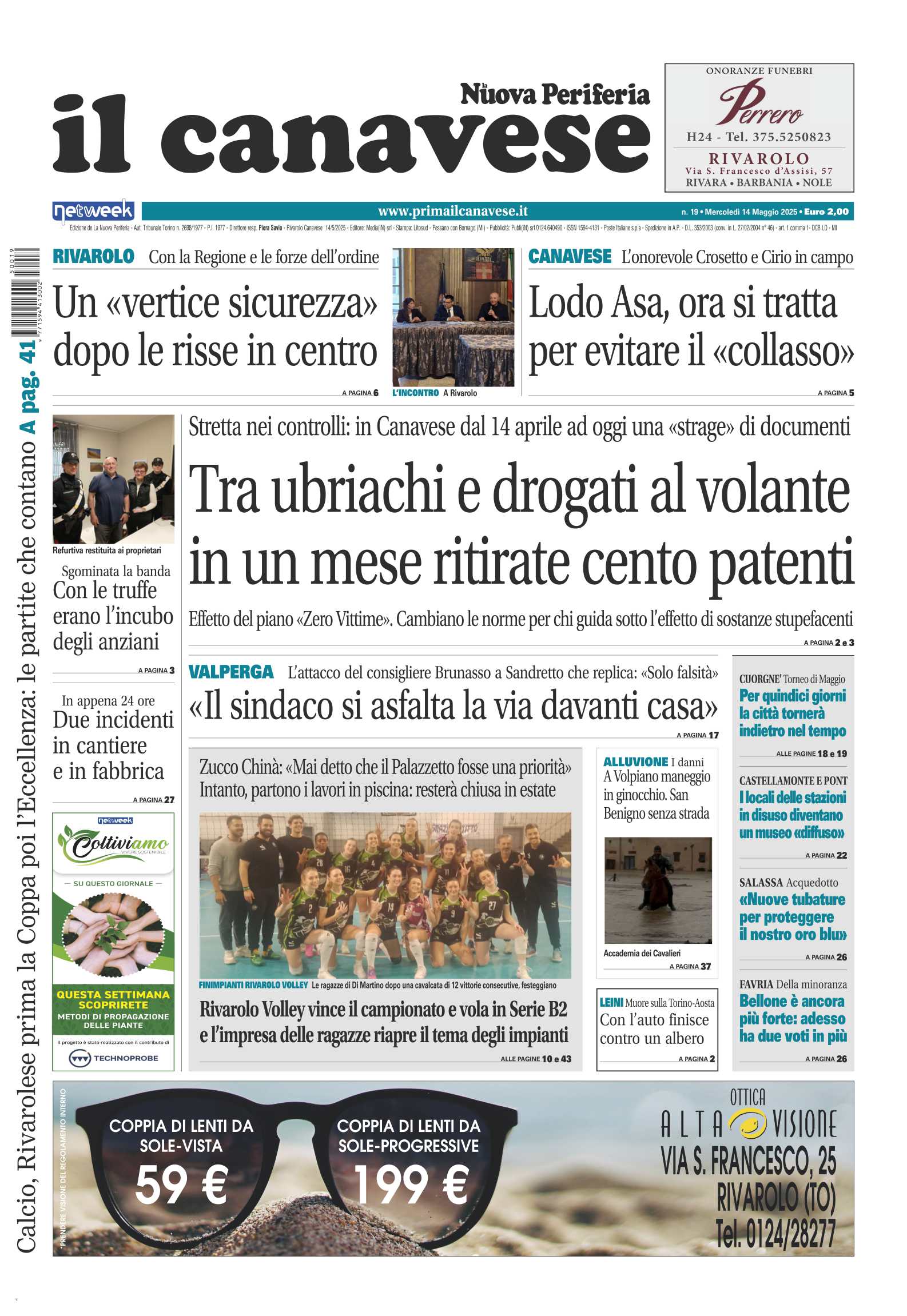 In questa edizione in primo piano i controlli sulle strade delle forze dell’ordine: in un mese ritirate 100 patenti a guidatori ubriachi o drogati al volante. A Rivarolo è emergenza sicurezza: convocato un vertice dopo le risse in centro. E’ polemica a Valperga sulla riasfaltatura delle strade; le accuse della Minoranza: «Il sindaco si riasfalta la via davanti casa».