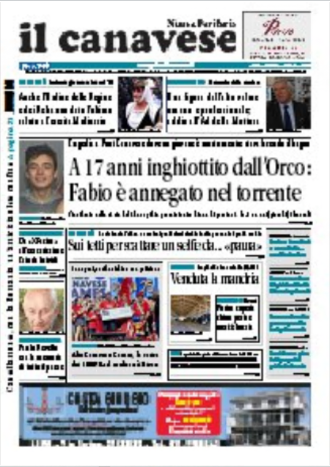 In questa edizione in primo piano la tragedia che ha colpito Fabio, morto ad appena 17 anni per un malore mentre fa il bagno all’Orco nella «Goia del Ghur». Allarme a Cuorgnè: ragazzini sui tetti degli edifici per scattare selfie da pubblicare sui social. A Rivarolo venduta la mandria dei Mellano, il bestiame finito all’asta è stato acquistato per 414mila euro.