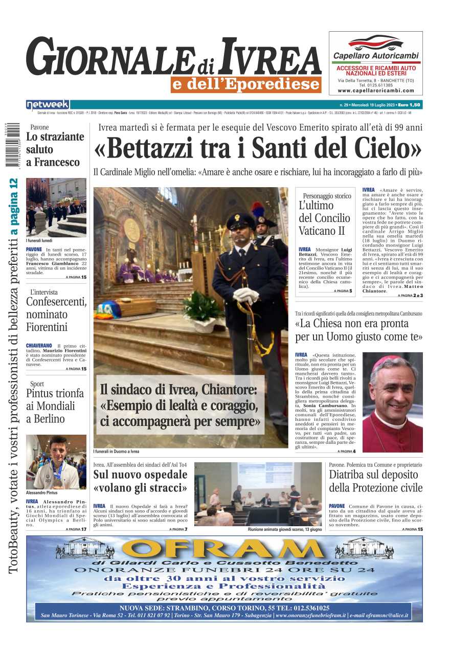 In evidenza la scomparsa del vescovo emerito di Ivrea Monsignor Bettazzi fra lacrime e ricordi di chi lo ha conosciuto, il Cardinare Arrigo Miglio: “Amare è anche osare e rischiare, lui ha incoraggiato a farlo di più”; il consigliere mertopolitano Sonia Cambursano: “La Chiesa non era pronta per un Uomo giusto come te”; il sindaco di Ivrea Chiantore: “Esempio di lealtà e coraggio”.