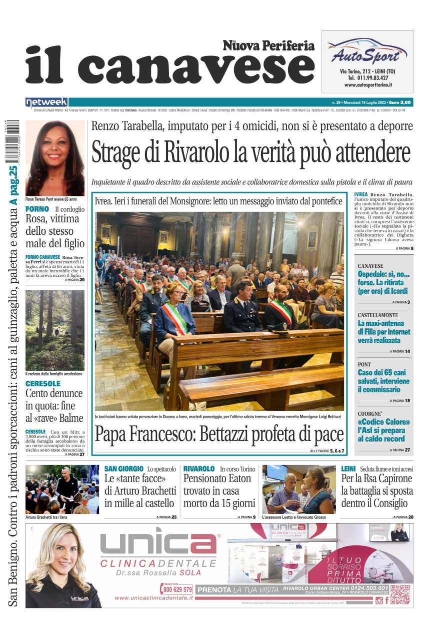 In questa edizione in primo piano la scomparsa di Monsignor Bettazzi, al suo funerale, letto un messaggio di Papa Francesco: “E’ stato profeta di pace”. Di nuovo in aula per il processo per la strage di Rivarolo: Renzo Tarabella non si è presentato, inqueitante il quadro descritto da alcuni testimoni. A Ceresole sgombrato il rave delle famiglie arcobaleno: cento denunce.