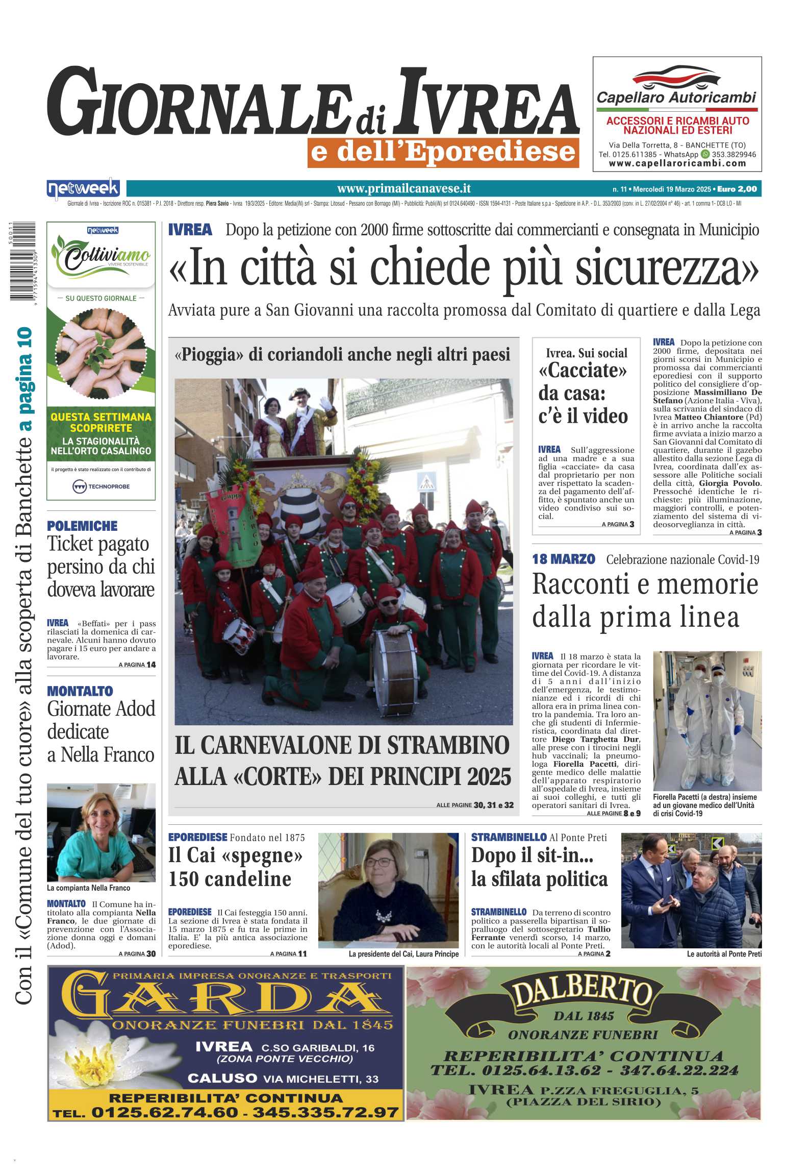 In evidenza la raccolta firme a Ivrea per chiedere maggiore sicurezza in città dopo gli ultimi mesi costellati da tantissimi episodi di violenza in strada. Nell’Eporediese si festeggia ancora il carnevale a cominciare dal carnevalone di Strambino ma non solo… Il ricordo a 5 anni dallo scoppio della Pandemia, il racconto di chi qui mesi li ha vissuti in prima linea.