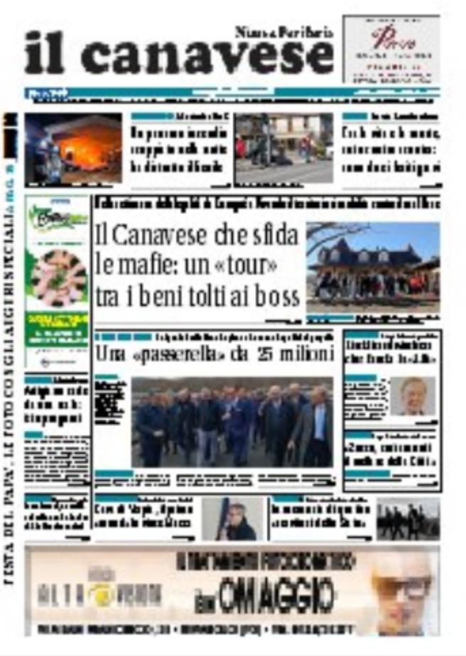 In questa edizione in primo piano la lotta del Canavese contro le mafie: un tour fra i veni tolti ai boss. Castellamonte, cava di Vespia: il primo round lo vince il sindaco Mazza. Ennesimo incidente sul lavoro in Canavese: a Rivara operaio edile cade da un ponteggio, è in prognosi riservata.