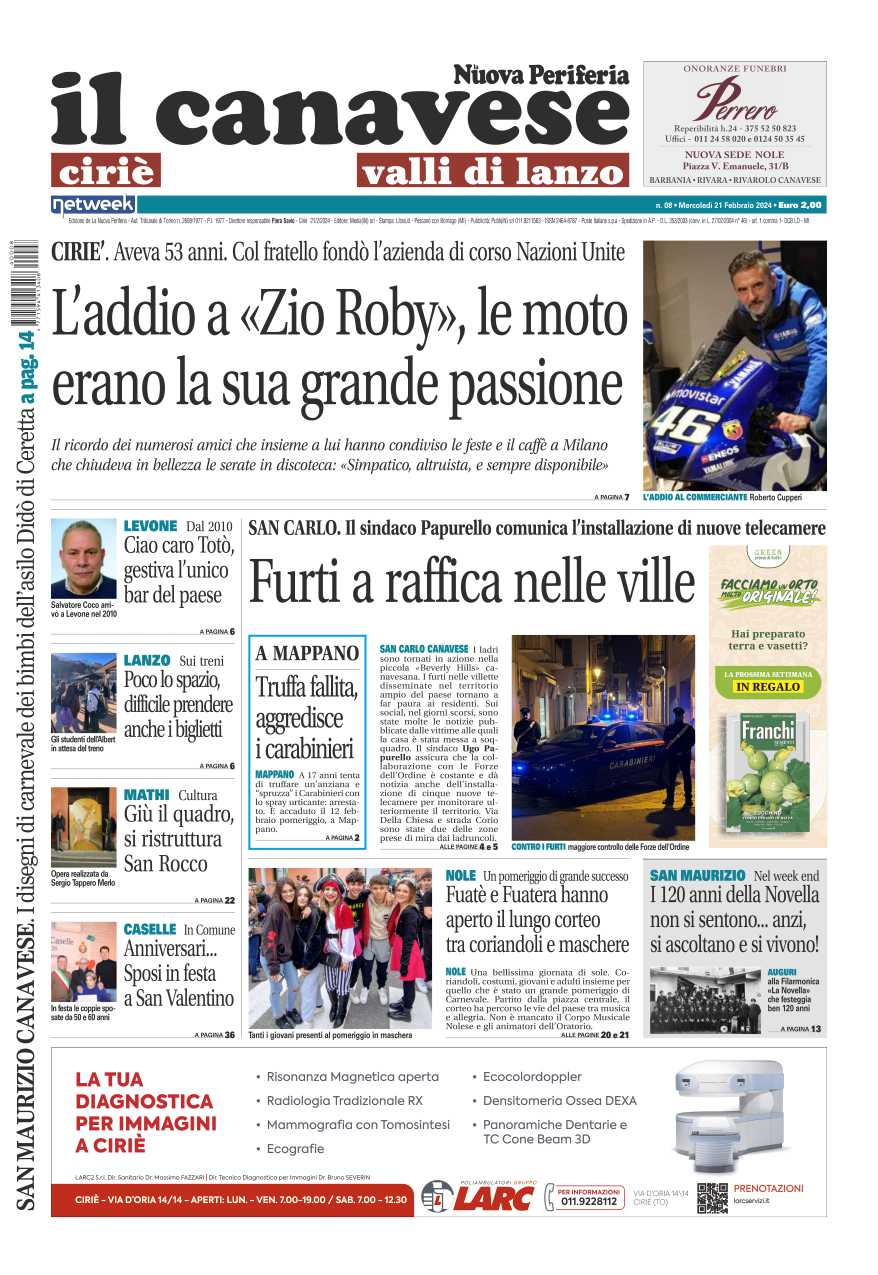 Da domani, mercoledì 21 febbraio 2024 come ogni settimana Il Canavese – edizione Rivarolo, Il Canavese – edizione Ciriè e Valli di Lanzo e Il Giornale di Ivrea sono in edicola con tantissime notizie.