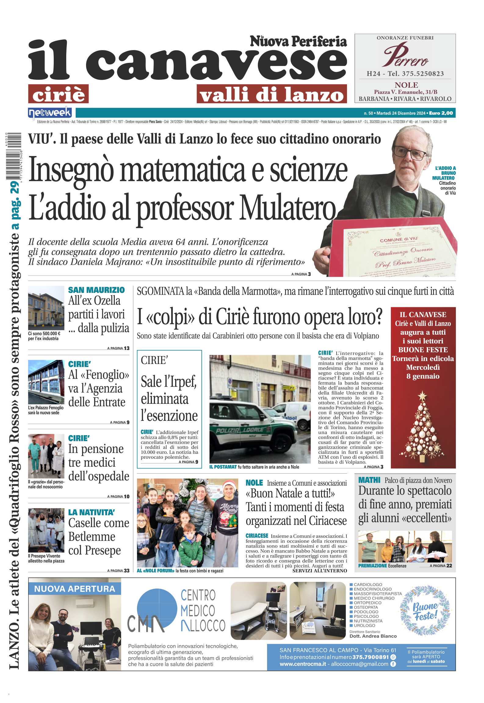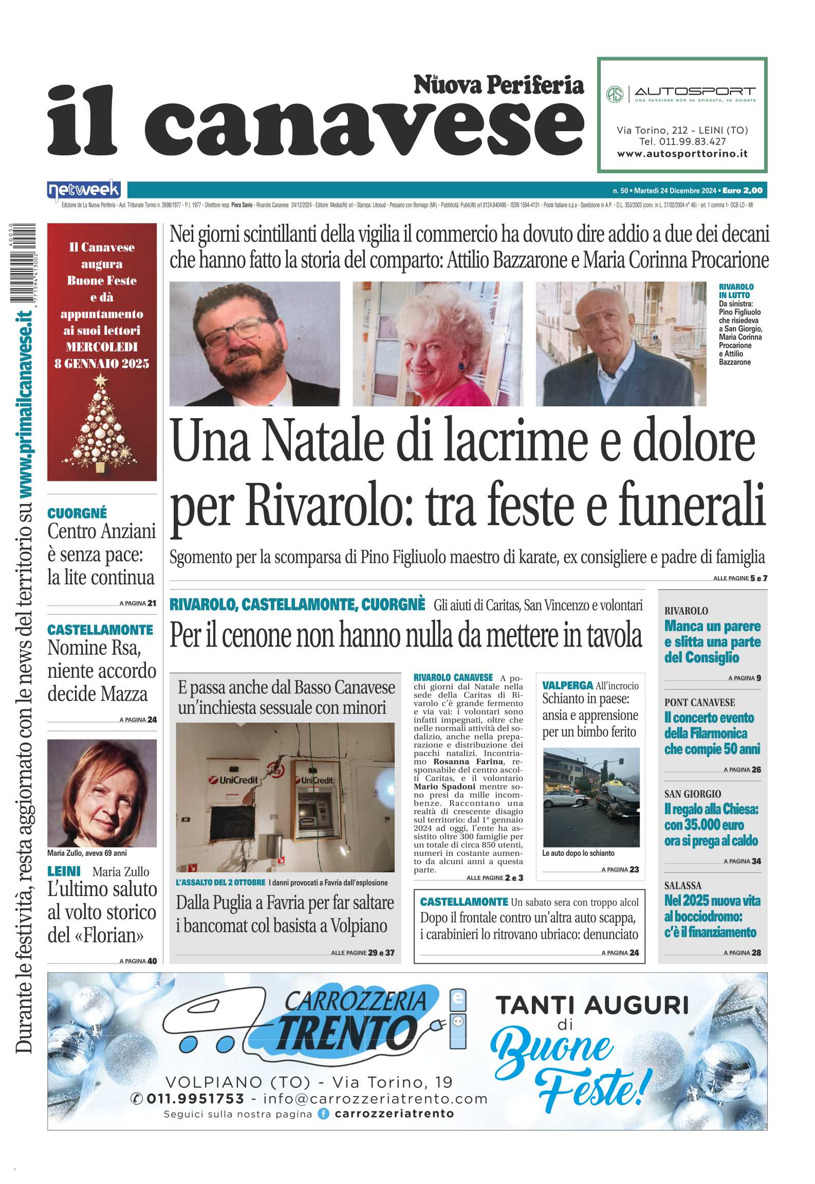 In questa edizione in primo piano i giorni di lacrime a Rivarolo per il lutto per la scomparsa di due storici commercianti Attilio Bazzarone e Maria Corinna Procarione e il maestro di karate Pino Figliuolo. L’inchiesta sulla situazione povertà nel territorio con l’intervista ai volontari della Caritas. Individuati e arrestati i responsabili del furto al bancomat di Favria, la banda della marmotta che ha colpito diversi sportelli automatici dalla Puglia al Canavese.In prima pagina l’addio al professor Mulatero, Viù in lutto per la scomparsa dell’insegnante di matematica e scienze. Arrestati i componenti della banda della marmotta: proseguono le indagini per accertare altri furti, anche i colpi di Ciriè potrebbero essere opera loro. A Ciriè l’amministrazione decide per l’aumento dell’aliquota Irpef, eliminata anche l’esenzione.