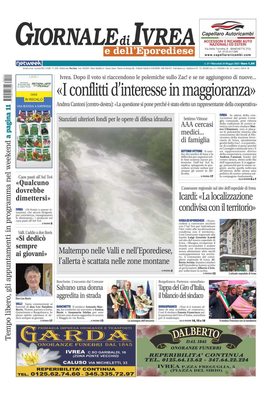 Il Canavese e Il Giornale di Ivrea (del 24 maggio) in edicola. Ecco le prime pagine