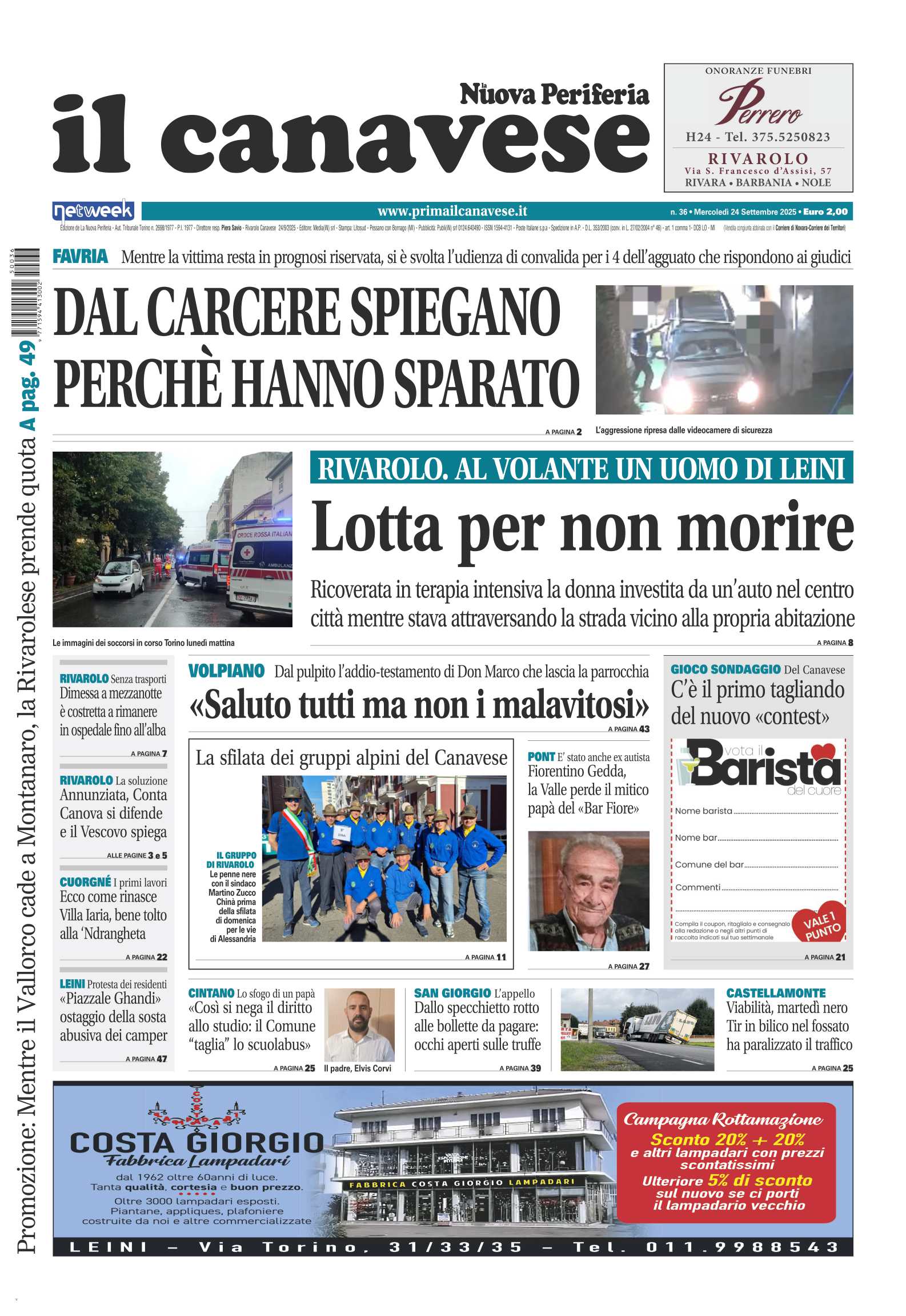 In questa edizione in primo piano l’ennesimo investimento di un pedono a Rivarolo, la vittima, una commerciante rivarolese, lotta fra la vita e la morte. L’assalto a mano armata a Favria: i quattro dal carcere rispondono alle domande degli inquirenti e spiegano i motivi dell’agguato. A Volpiano Don Marco saluta i fedeli: “Saluto tutti ma non i malavitosi”.