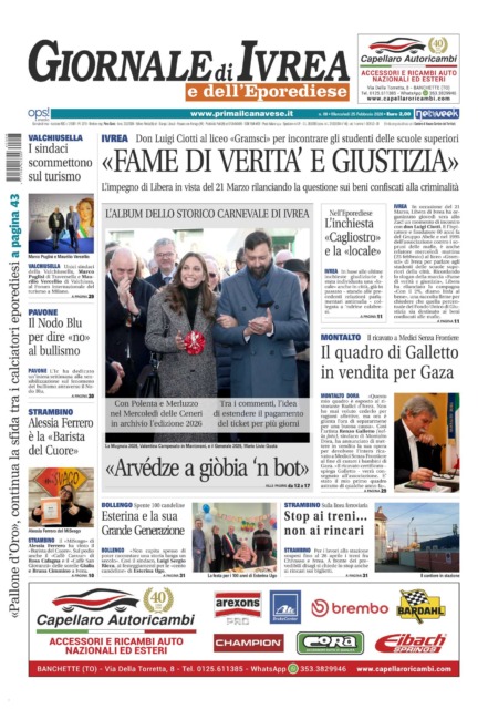 Da domani, mercoledì 25 febbraio 2026 come ogni settimana Il Canavese – edizione Rivarolo, Il Canavese – edizione Ciriè e Valli di Lanzo e Il Giornale di Ivrea sono in edicola con tantissime notizie.