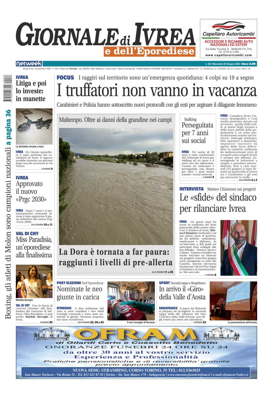 Da domani, mercoledì 26 giugno 2024 il Canavese – edizione Rivarolo, Il Canavese – edizione Ciriè e Valli di Lanzo e Il Giornale di Ivrea sono in edicola. Ecco le prime pagine e le notizie principali.