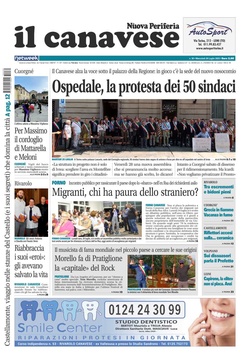 In questa edizione in primo piano la protesta dei sindaci davanti al Palazzo della Regione: chiedono alla Giunta che il nuovo ospedale del Canavesese venga costruito nell’ara Ribes di Pavone. L’addio a Massimo Viglierco, il Vigile del fuoco cuorgnatese morto mercoledì scorso in un terribile incidente mentre correva su un allarme incendio. A Forno un incontro con la popolazione per la casa di riposo ora adibita a centro accoglienza per migranti.