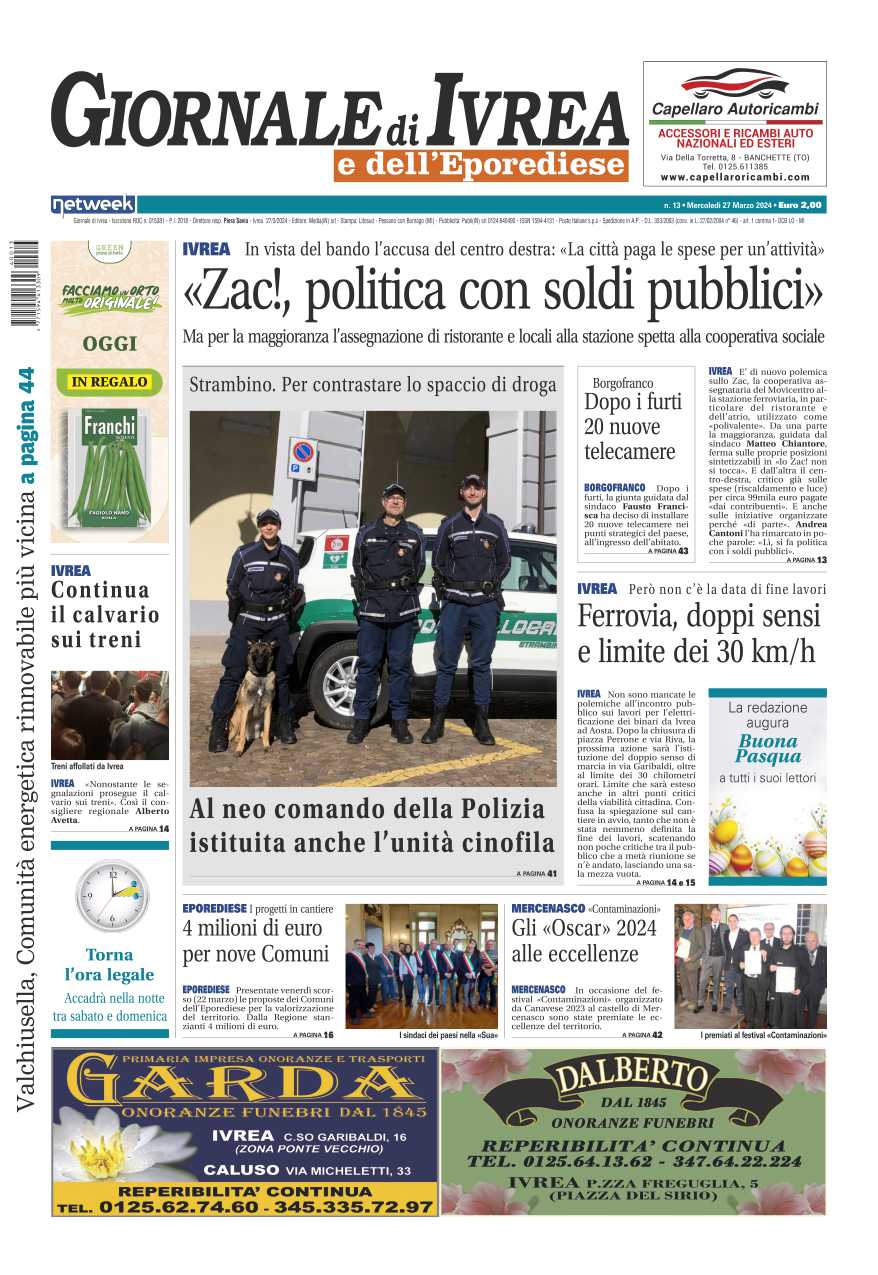 In evidenza a Ivrea è ancora polemica sullo Zac!, il centrodestra all’attacco dell’Amministrazione: «Politica con i soldi pubblici». A Strambino istituita l’unità cinofila per contrastare lo spaccio di droga. E poi ancora sull’elettrificazione della linea Ivrea-Aosta: per ora non c’è una data di fine lavori.