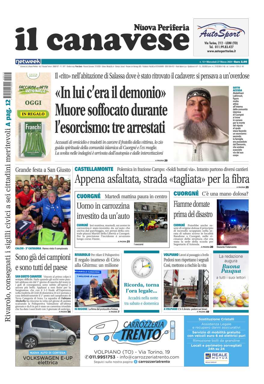 In prima pagina l’addio all’imprenditore Raffaele Catenazzo, vittima a soli 45 anni di un malore improvviso. A Nole il camion per la raccolta dei rifiuti sbaglia manovra e abbatte un balcone. Il presidente della Regione Piemonte Alberto Cirio alla Fiera di Primavera a Ciriè per assaggiare i prodotti e premiare le associazioni.
