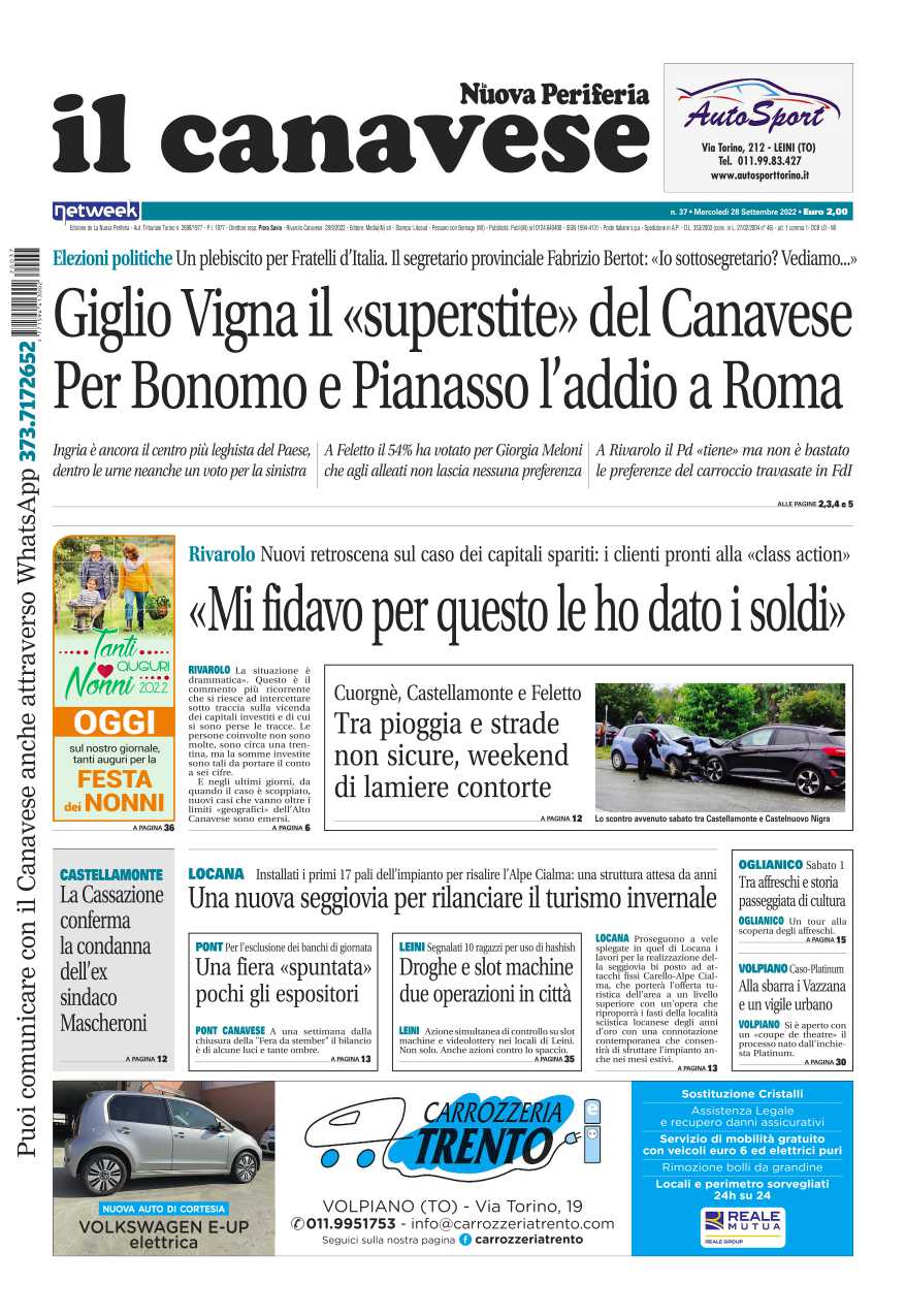 In questa edizione in primo piano le elezioni politiche: Giglio Vigna unico canavesano in parlamento, fuori Bonomo e Pianasso. E poi ancora il giallo dei capitali spariti e della broker che non dà notizie, spuntano nuovi investitori. A Locana una nuova seggiovia per rilanciare il turismo