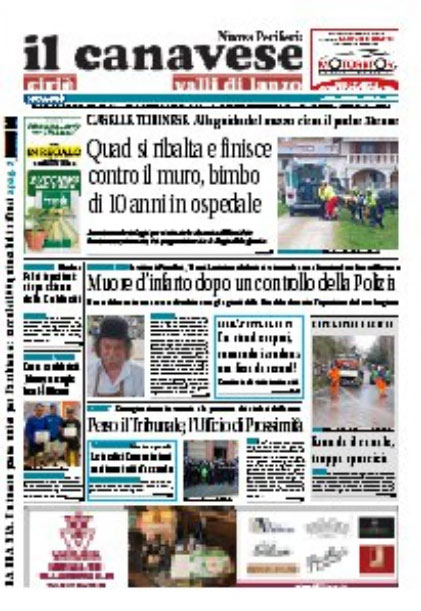 In prima pagina il dramma dell’incidente sul quad di un bimbo di 10 anni, il mezzo si ribalta e finisce contro il muro, il bimbo è in prognosi riservata al Regina Margherita. Lutto a Pessinetto: Piero Soria, storico ambulante è morto a seguito di un malore dopo un controllo della polizia a seguito del quale sarebbe nato un acceso diverbio.