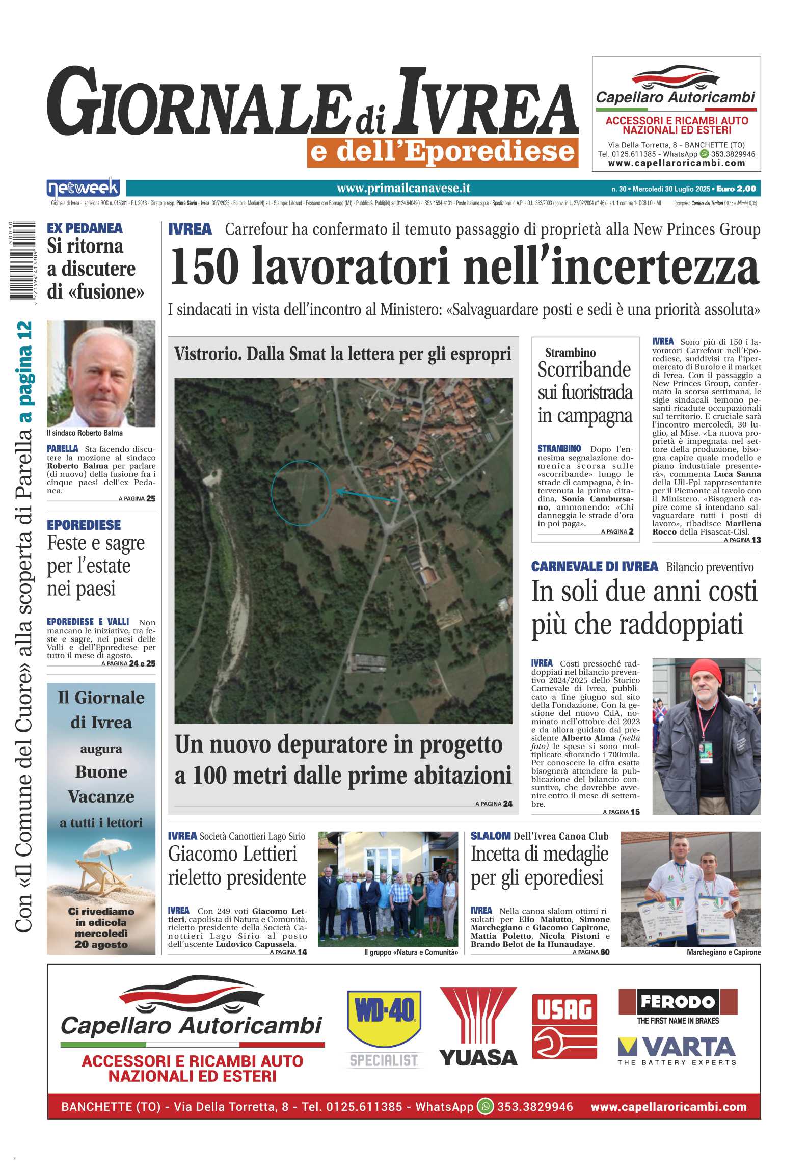 In evidenza la cessione dei supermercati Carrefour a New Princess Group, incertezza per 150 lavoratori dell’Eporediese. A Vistrorio un nuovo depuratore: arrivano le lettere degli espropri da Smat. Carnevale di Ivrea: i numeri dicono che in soli due anni i costi della manifestazione sono raddoppiati.