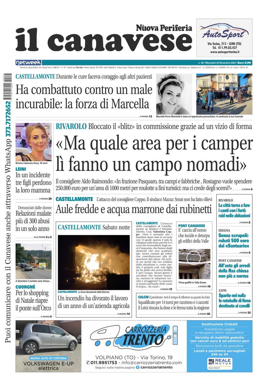 In questa edizione in primo piano la polemica a Rivarolo per l’area camper voluta dal sindaco Rostagno e combattuta dalla minoranza. Il terribile incidente che a Leini ha portato via una giovane mamma ai suoi tre figli. A Castellamonte minoranza sul piede di guerra: “Nelle scuole aule fredde e acqua sporca dai rubinetti”.