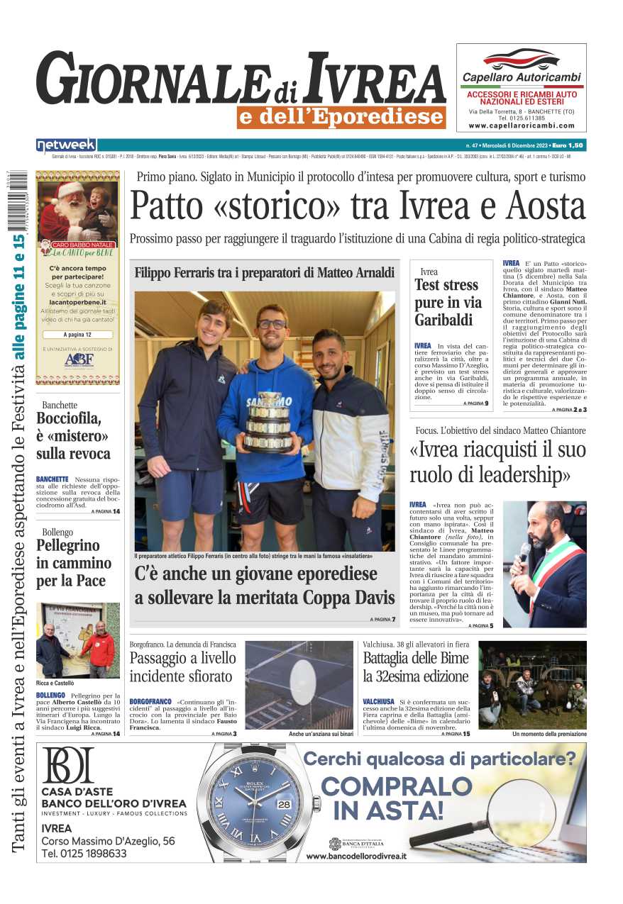 In evidenza lo storico patto siglato fra Ivera e Aosta per promuovere cultura, sport e turismo. C’è anche un po’ di Ivrea fra i protagonisti della Coppa Davis vinta dall’Italia, è Filippo Ferraris, fra i preparatori di Matteo Arnaldi. L’obiettivo del sindaco eporediese Matteo Chiantore di far riconquistare a Ivrea il ruolo di leadership.