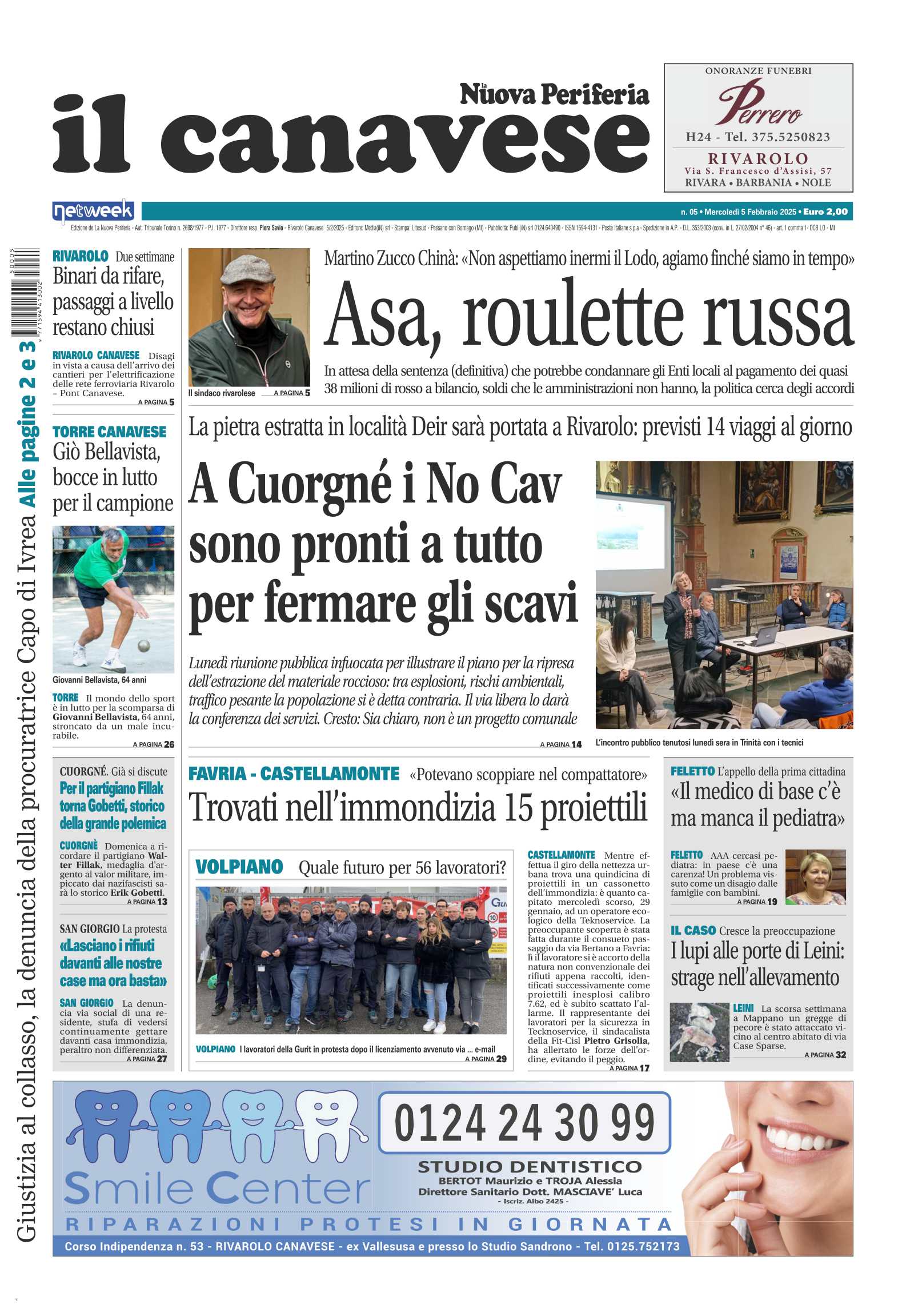In questa edizione in primo piano il Lodo Asa: fa paura ai Comuni che devono fare in fretta per correre ai ripari o sarà una catastrofe. A Cuorgnè c’è preoccupazione per la cava, sono tanti i cittadini pronti a tutto per fermare gli scavi. A Favria un netturbino trova fra i rifiuti 15 proiettili inesplosi: avrebbero potuto farlo nel compattatore.Il Canavese – edizione Ciriè e Valli di Lanzo