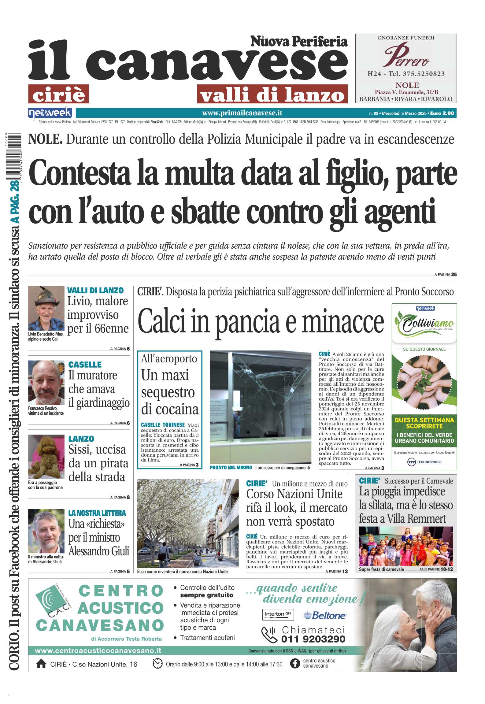 In prima pagina l’aggressione al pronto soccorso di Ciriè, disposta la perizio psichiatrica sull’uomo. Incredibile a Nole: contesta la multa del figlio poi va a sbattere contro l’auto degli agenti. Per un milione e mezzo di euro corso Nazioni Unite a Ciriè si rifà il look.