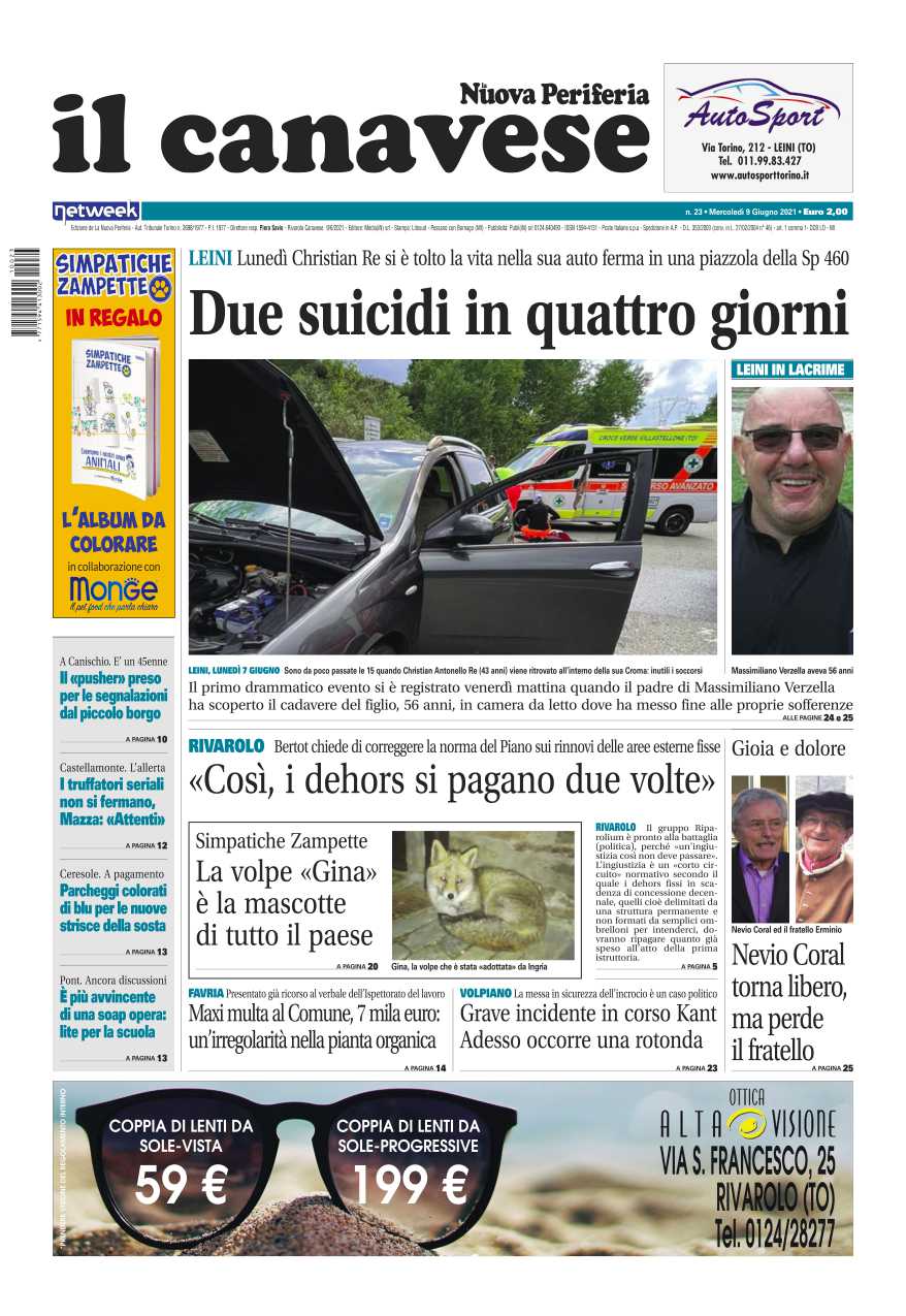 Come ogni settimana sono tantissime le notizie che troverete su Il Canavese – edizione Rivarolo. In questa edizione in primo piano le due tragedie che hanno colpito Leini: a distanza di appena quattro giorni due persone si sono tolte la vita: Christian Re (43 anni) e Massimiliano Verzella (56 anni). E poi a Rivarolo l’ex sindaco Bertot chiede di correggere la norma del piano regolatore sulle aree esterne fisse dei locali: “Così, i dehors si pagano due volte”. A Leini l’ex sindaco Nevio Coral torna libero dopo l’arresto nell’inchiesta Minotauro ma perde il fratello Erminio. A Favria maxi multa per il Comune: 7mila euro per un’irregolarità nella pianta organica. A Volpiano si torna a parlare di sicurezza stradale: dopo il grave incidente in corso Kant l’incrocio diventa un caso politico e sono in molti a chiedere la rotonda.