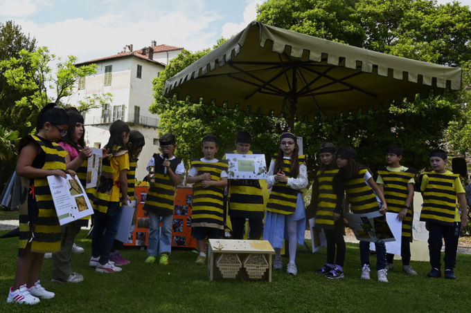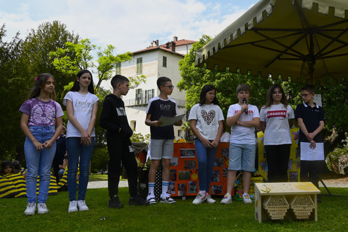 Il progetto è iniziato con la conoscenza diretta attraverso il racconto di due giovani apicultori del territorio che hanno illustrato ai ragazzi quanto sono importanti le api, ma non solo loro, anche più in generale tutti gli insetti impollinatori, per la vita della natura e del nostro benessere. L’assaggio del miele è stato il passaggio successivo per poi passare alla costruzione delle casette delle api che sono state donate alle scuole del Comprensorio, arricchite di alcune piante idonee per l’impollinazione, come la lavanda. Infine, nella prestigiosa cornice del Castello di Masino, domenica 19 maggio 2024, alla presenza del vice presidente regionale FAI Smeralda Saffirio, della professoressa Monica Marchetti dell’ICCastellamonte, del presidente di Circoscrizione Lions Michele Perino, del presidente di Zona Davide Bevilacqua e di numerosi soci del Lions Club Alto Canavese, i ragazzi delle scuole hanno presentato davanti ai propri genitori i lavori prodotti ed un libretto realizzato con loro favole e loro illustrazioni. Alla cerimonia sono intervenute anche le insegnanti che hanno coordinato al meglio tutte le esibizioni dei ragazzi.