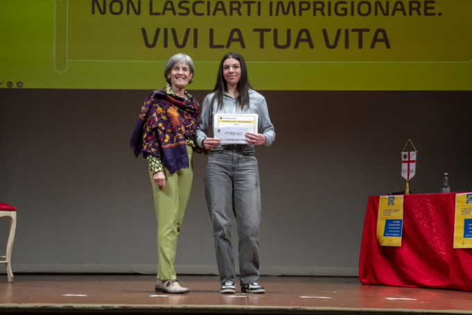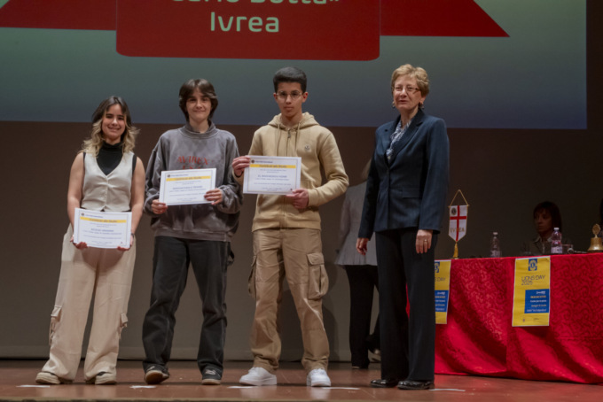 Il Lions Day si è concluso con la premiazione dei vincitori del Contest Lions 2025 intitolato “Viva l’indipendenza”. Ai ragazzi delle scuole secondarie di secondo grado eporediesi è stato chiesto di elaborare dei messaggi contro ogni forma di dipendenza scegliendo tra il linguaggio video e quello grafico. Sono stati presentati complessivamente 42 elaborati realizzati in seguito ad un incontro propedeutico realizzato in collaborazione con il Serd AslTO4 rappresentato sul palco dalle psicologhe Enrica Zanetto e Maila Amadei. Quest’ultima era tra i componenti della giuria insieme all’ex atleta e allenatore di canoa Roberto D’Angelo, all’architetto e docente di grafica Antonio Frassà, alla giornalista Elisabetta Signetto e alla socia Lions Silvia Grasso. Il voto combinato della giuria e dei social ha visto al terzo posto il video “Guida la tua vita” realizzato dagli studenti del Gramsci Brando Belot de la Hunaudaye e Nicola Pistoni. Secondo classificato il video “Ludopatia”, opera di Claire Negri, studentessa dell’IIS Cena così come i vincitori del primo premio Emma Cordoglio, Stefano Maurella e Matilde Marione, autori del video “Non lasciarti imprigionare: vivi la tua vita”.