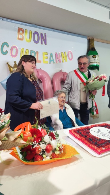 Durante la celebrazione, il sindaco e i consiglieri comunali hanno consegnato alle due centenarie una pergamena commemorativa e un omaggio floreale, portando i calorosi auguri di tutta l’amministrazione comunale.