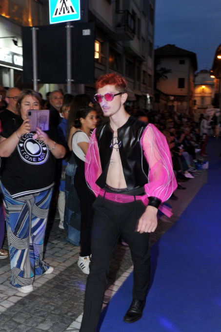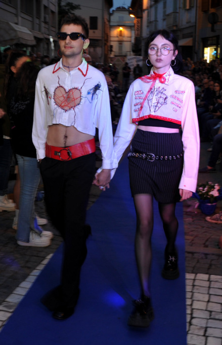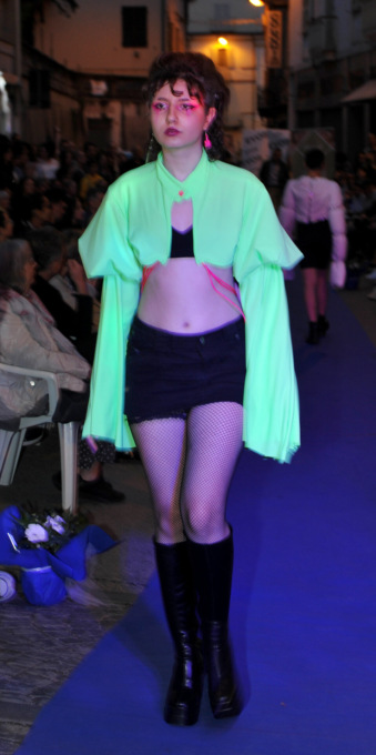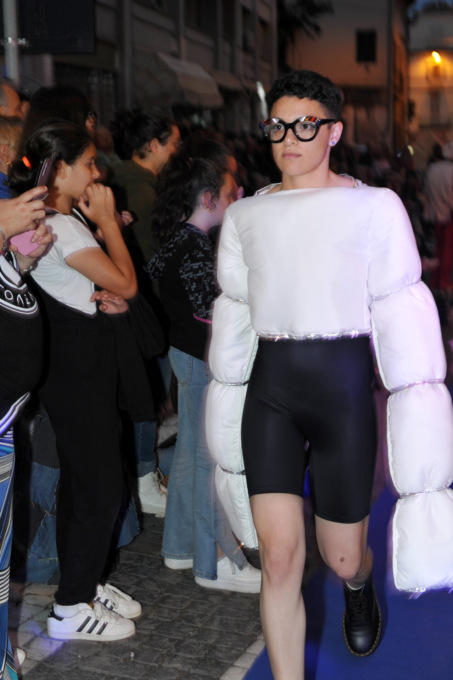 La prima uscita è stata dedicata alla tecnica del Upcycling, ovvero come trasformare dei capi in disuso per darle nuova vita. Quindi, dopo un breve intrattenimento, c’è stata l’uscita dei vestiti in stile Soft Punk, un abbigliamento con un mood molto trasgressivo. Sembravano provenire dal futuro gli abiti del Metaversocon l’uso di materiali inusuali, contrasti cromatici e forme innovative.