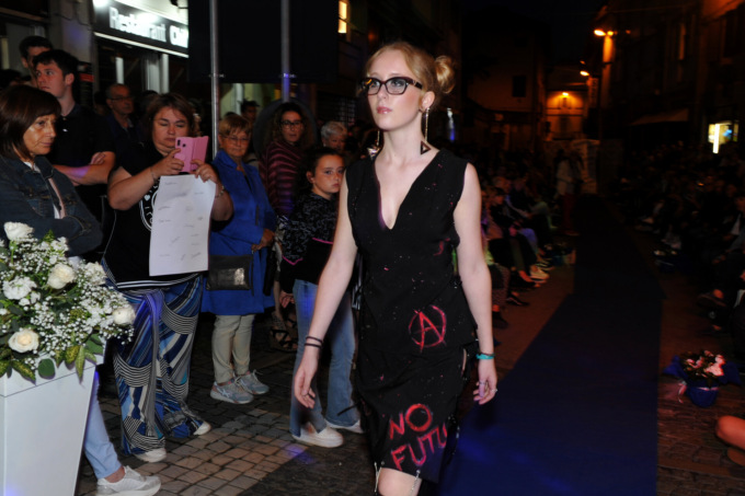 Vestiti da sera e creazioni originali hanno contraddistinto la sfilata degli allievi dell’indirizzo di moda dell’istituto superiore Felice Faccio. L’iniziativa è stata organizzata dall’associazione Arte e Commercio, presieduta da Carlo Tesolin, in collaborazione con l’Amministrazione comunale; lo sponsor speciale è stato Formento.