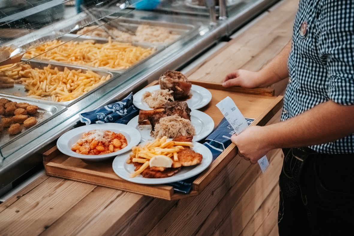 La spettacolare cucina a vista è guidata dallo chef piemontese Fulvio Marengo, forte di una brigata di 40 addetti, che prepara ogni giorno stinchi, schnitzel, gulasch, spätzle e tante altre specialità bavaresi, con proposte anche vegetariane, gluten-free e menù per bambini. I prodotti provengono da artigiani trentini e produttori locali del territorio torinese.  Tutti i menù sono sul sito della festa.