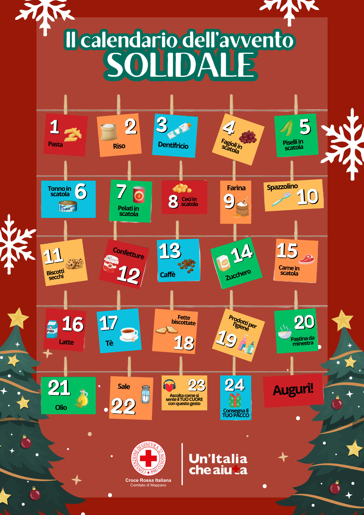 L’impegno della CRI di Mappano prosegue con il Calendario dell’Avvento Solidale, un’iniziativa che invita i cittadini, dal 1° al 22 dicembre, a donare ogni giorno un prodotto alimentare o per l’igiene personale. L’obiettivo è riempire scatoloni che verranno consegnati alle famiglie in difficoltà il 23 e 24 dicembre, offrendo un sostegno prezioso durante le festività.