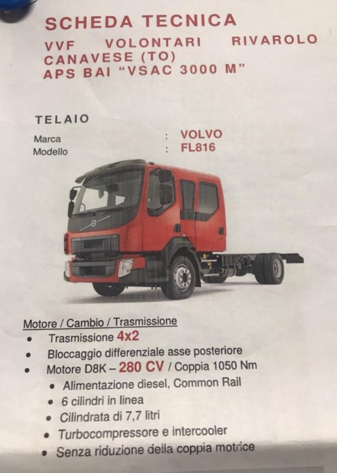 Il 18 dicembre scorso i volontari VVF devono interrompere il loro servizio: non hanno un mezzo. Si tratta di un Iveco del 1996 con un totale di chilometri percorsi pari a 130.000. Occorre sostituire un pezzo ma visto la vetustà è difficile (se non impossibile) reperirlo. Molti dei mezzi di quella data stanno andando in rottamazione e di qui si capisce la difficoltà di sistemarlo con quel pezzo che – se non sostituito – costringe a tenerlo fermo nell’autorimessa. «Abbiamo segnalato la situazione al Comando Provinciale di Torino che si è subito attivato per darci una mano – spiega il vice Capo distaccamento Roberto Zaccaria – Si è attivato con tutti i Comandi VVF d’Italia per cercare di reperire il pezzo occorrente e, per fortuna, è stato trovato da un altro mezzo andato in rottamazione. Ora il nostro mezzo è presso l’officina del Comando per sostituire quello rotto e nel week end dovrebbe essere riconsegnato perrmettendoci così di riprendere il servizio. Ma non sappiamo quanto durerà e se durerà. E’ pur sempre un mezzo del 1996, il pezzo montato è usato e il mezzo proprio per l’età non è sicuro ed efficiente come lo sono quelli più moderni. Abbiamo così deciso di acquistare una nuova APS Bai, modello VSAC 3000 M allestito su Volvo FL 816 4×2».