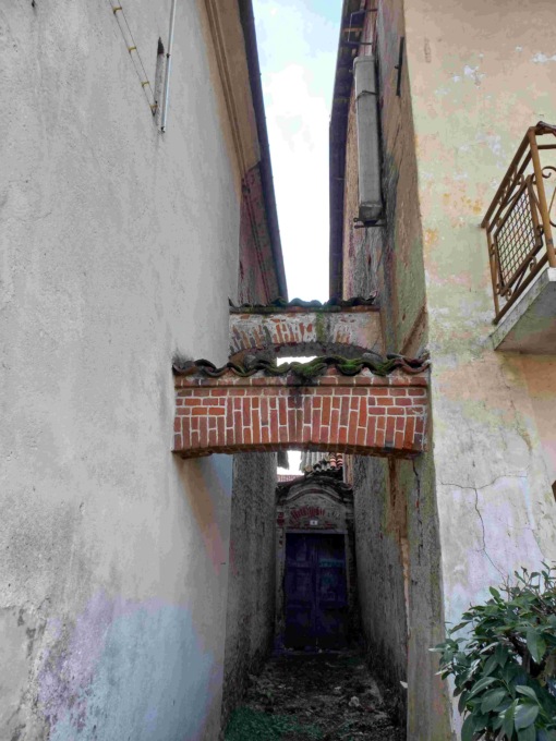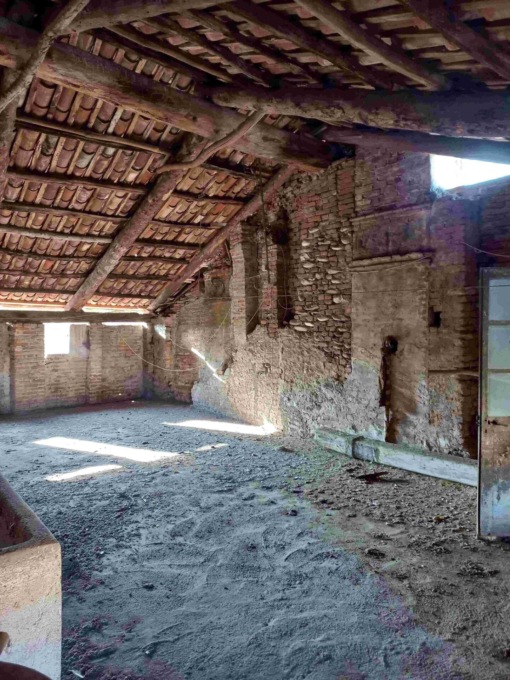L’edificio che sarà recuperato è delimitato a nord dalla piazza Statuto, ad est dalla chiesa parrocchiale di San Giorgio, a sud da una tettoia e ad ovest da un fabbricato di civile abitazione. L’edificio fa parte di un aggregato edilizio del centro storico, è composto da due piani fuori terra e da un piano sottotetto. Il portico al piano terra è fortemente caratterizzato dagli archi a sesto ribassato che lo compongono, unico esempio nel suo genere presente a Lusigliè. Al piano terra, con accesso dal portico, sono presenti due locali disimpegnati, un bagno, con volta a botte lunettata, e un locale cantina, con piano ribassato senza pavimentazione e con soffitto ligneo. Al piano primo, con accesso dalla scala interna ad unica rampa con pedate in pietra, sono presenti quattro locali: due stanze presumibilmente utilizzate in passato come camere da letto, un soggiorno e una cucina. Il grande vano situato ad ovest è ribassato di circa 25 centimetri, mentre la cucina posta sopra il portico è ad una quota rialzata di circa 40 centimetri: entrambi i locali hanno un pavimento in marmette di cemento e graniglia. Dalla cucina si accede al balconcino fronte piazza. Gli altri locali sono complanari e hanno un pavimento in cotto. All’ampio locale unico del sottotetto si accede con una scala in legno dal soggiorno. Le aperture esistenti sui tre lati sono aperte, il pavimento è in battuto di cemento e la struttura della copertura a vista.
