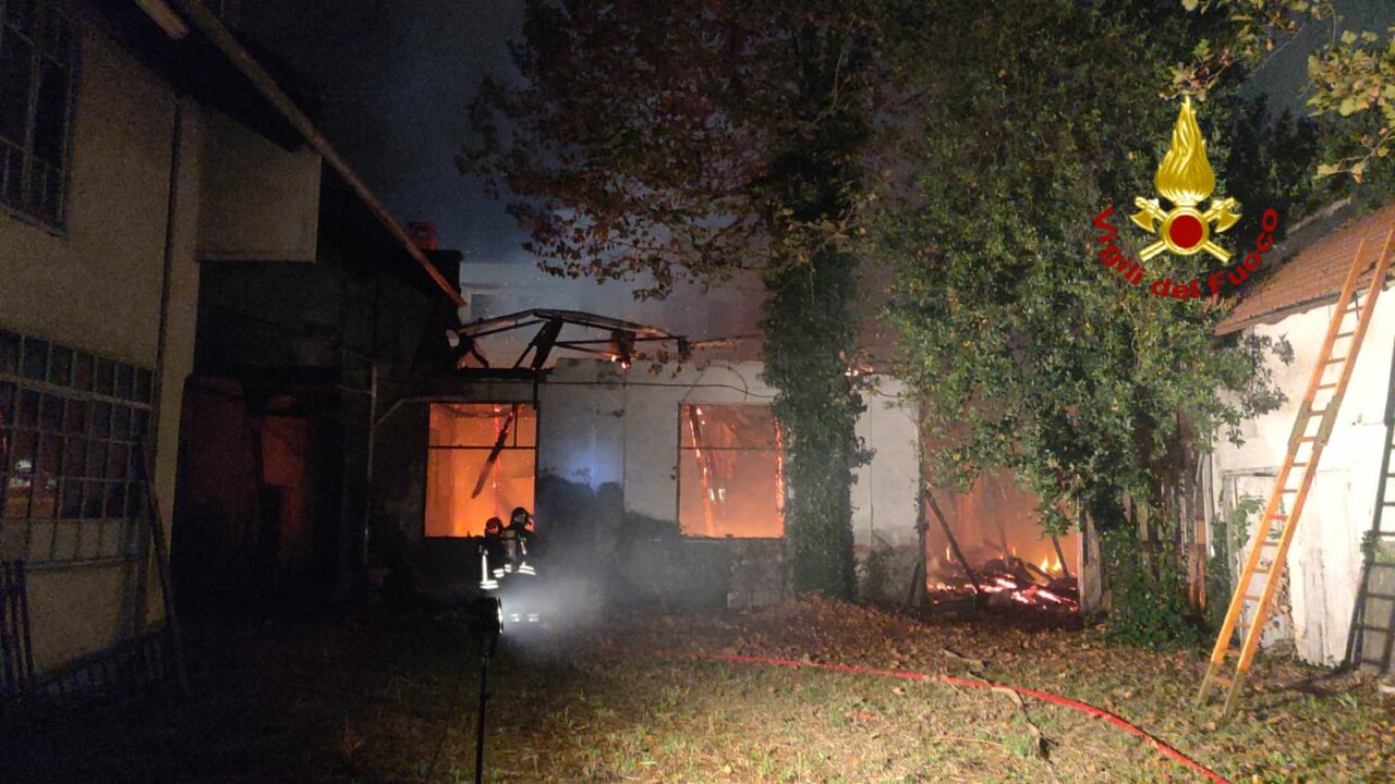 L’allarme è scattato intorno alle 22 di lunedì 27 settembre 2021, a bruciare la ex falegnameria Bertetto.