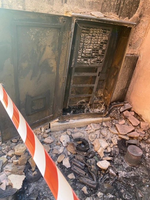 Le fiamme hanno devastato dei cassonetti dell’immondizia nei pressi dello stabile e due quadri elettrici posti sulla facciata dell’edificio, si sono alzate fino a lambire i piani alti del palazzo dove si trovano gli uffici comunali.