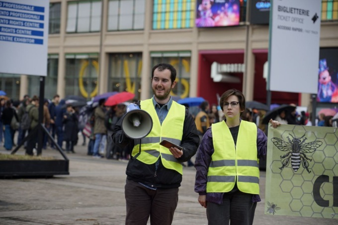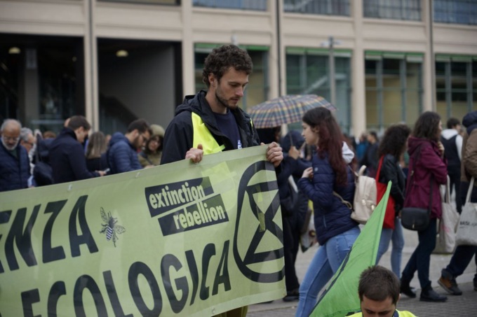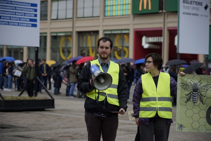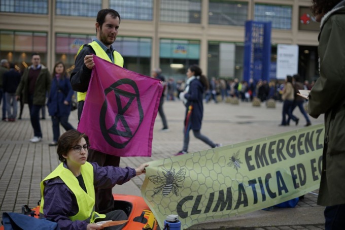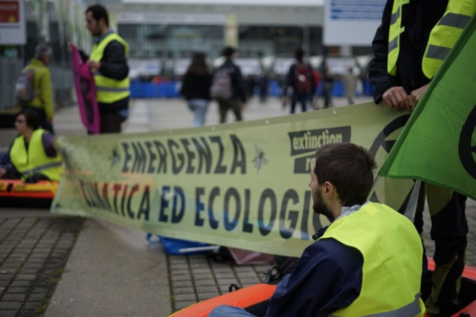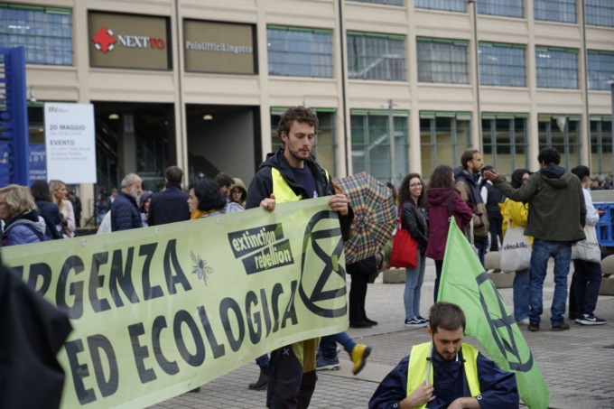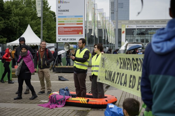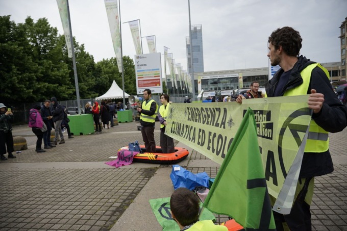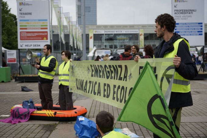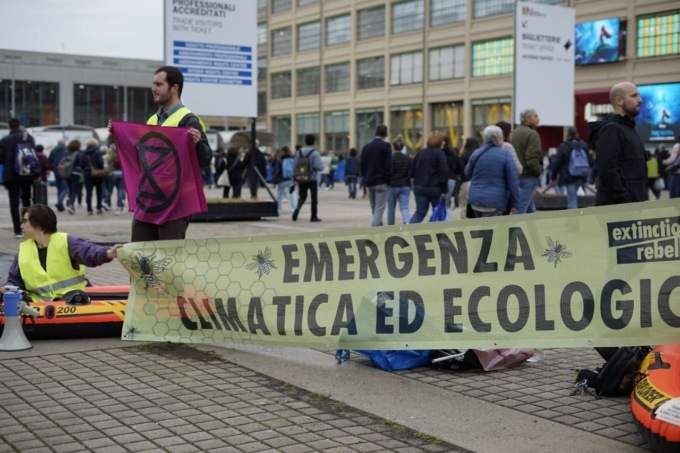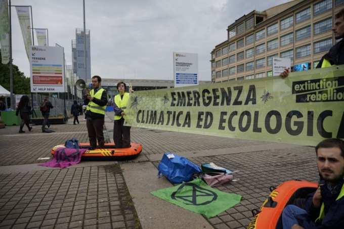 Con l’azione di oggi Extinction Rebllion si rivolge invece “agli invitati e partecipanti al Salone affinché usino la propria voce per denunciare le responsabilità del nostro governo di fronte alle tragedie che già oggi colpiscono il nostro territorio” dichiara Davide, uno degli attivisti presenti. “I morti in Emilia Romagna ci implorano di toglierci le bende dagli occhi ed esigere un cambiamento dai nostri governi”.