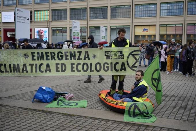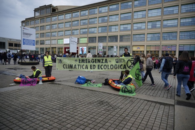 “Il Salone Internazionale del Libro da sempre accoglie scrittori, editori, giornalisti, esperti e personaggi della società civile che con la loro voce – e la loro penna – narrano il mondo in cui viviamo. In un contesto in cui la politica del nostro territorio invita a rivolgersi al “padre eterno” per scongiurare la siccità, Extinction Rebellion torna in azione chiedendo a scrittori presenti di prendere posizione nei confronti di un governo sempre più distante dai suoi stessi obiettivi climatici”, dichiarano gli attivisti attraverso un comunicato.