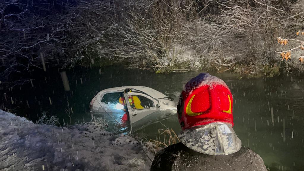 Ancora un incidente causato dalla nevicata che si è abbattuta ieri pomeriggio in tutta la provincia di Torino. Teatro del sinistro stavolta è stata Ivrea dove un uomo ha perso il controllo della sua vettura in regione Campasso e ha terminato la sua corsa nel naviglio.