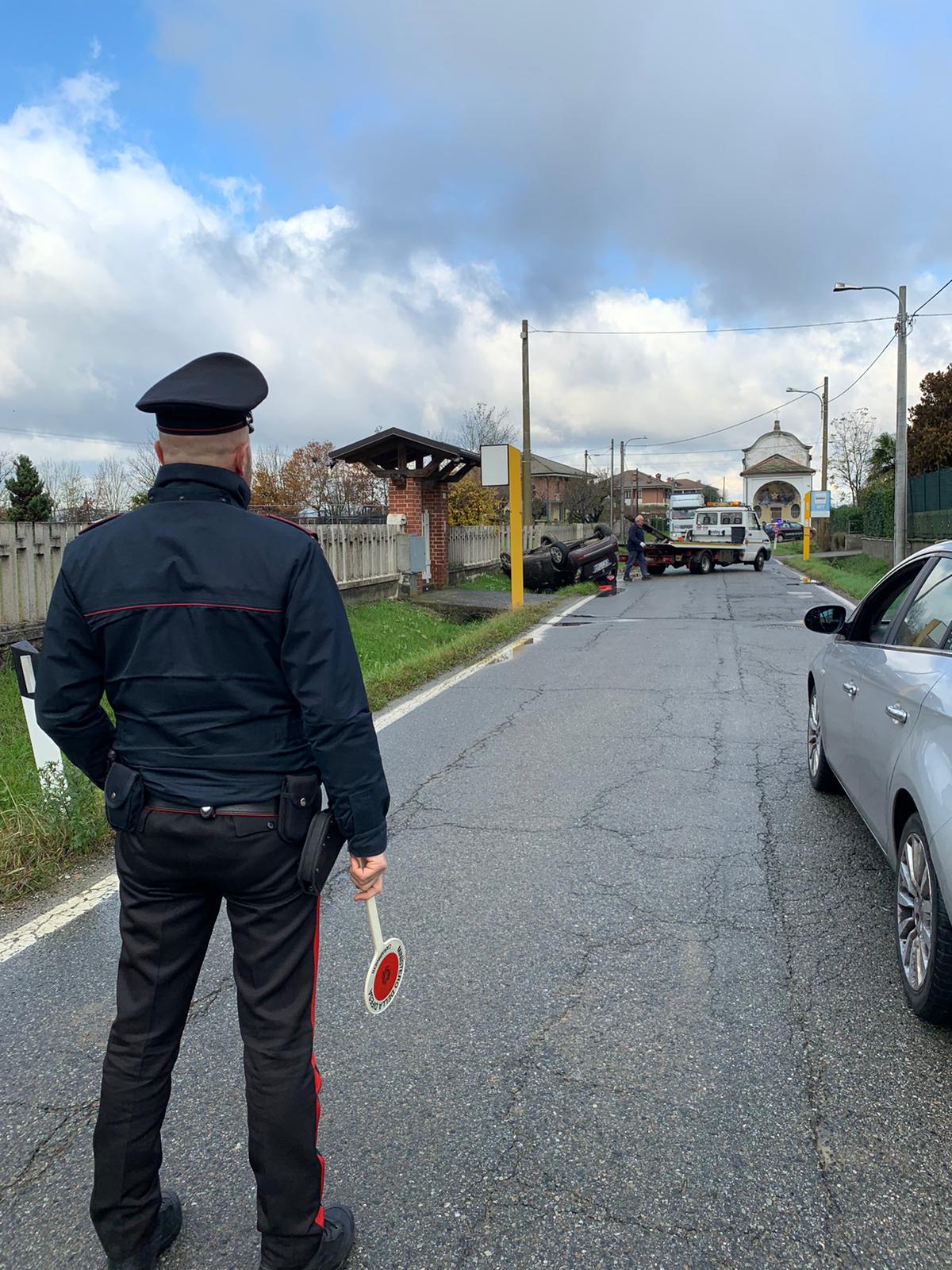 Auto fuori strada a San Benigno Canavese